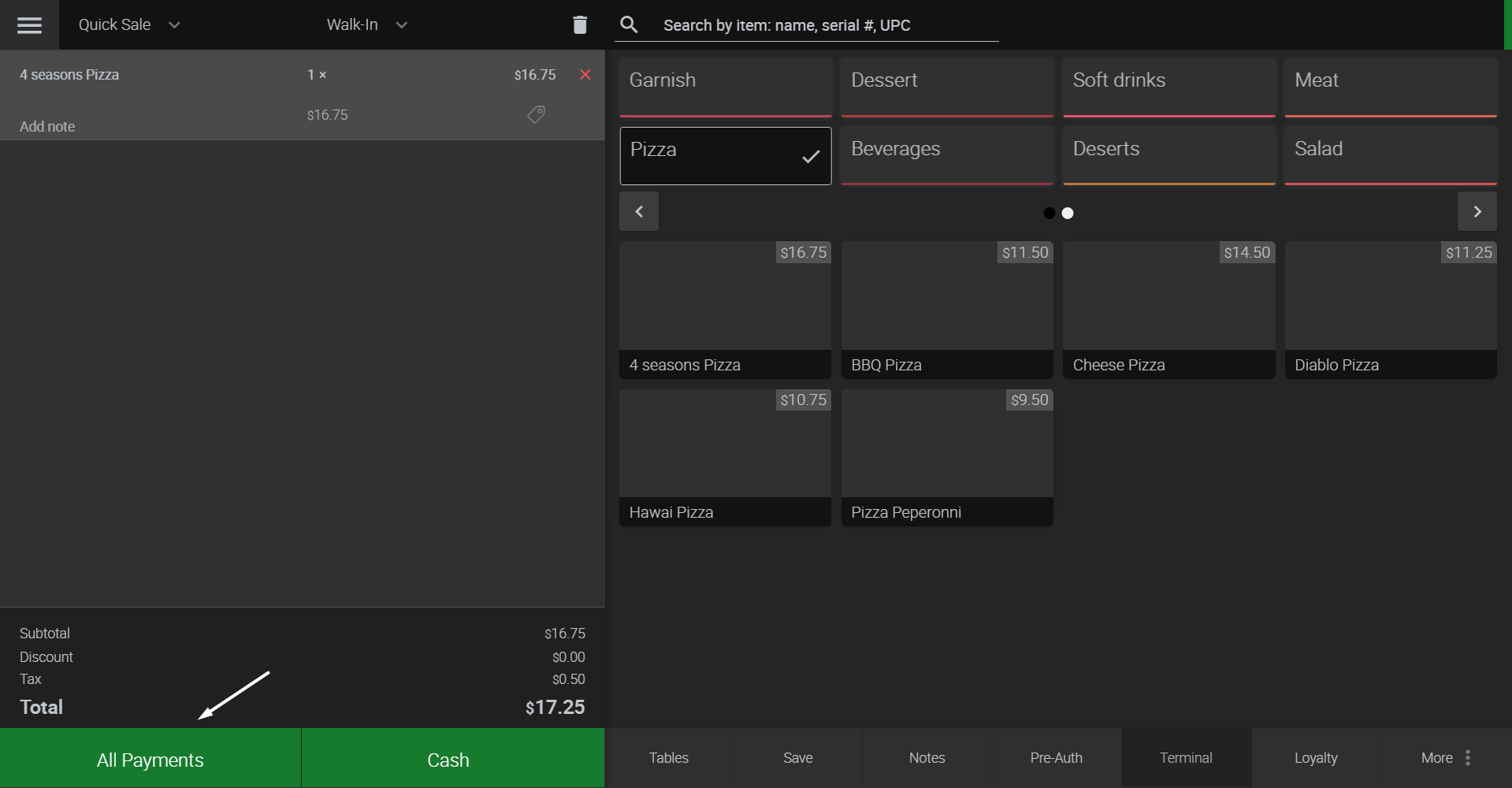 1. After selecting one or more products in the catalog, click on the green All Payments button on the bottom left of the screen.