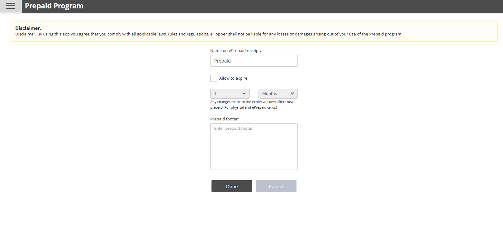 Footer and name on ePrepaid receipts.