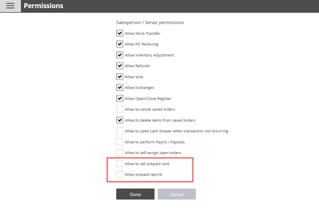 In the POS system, Prepaid refers to transactions where customers pay in advance for goods or services. It could be used as a Gift Card.