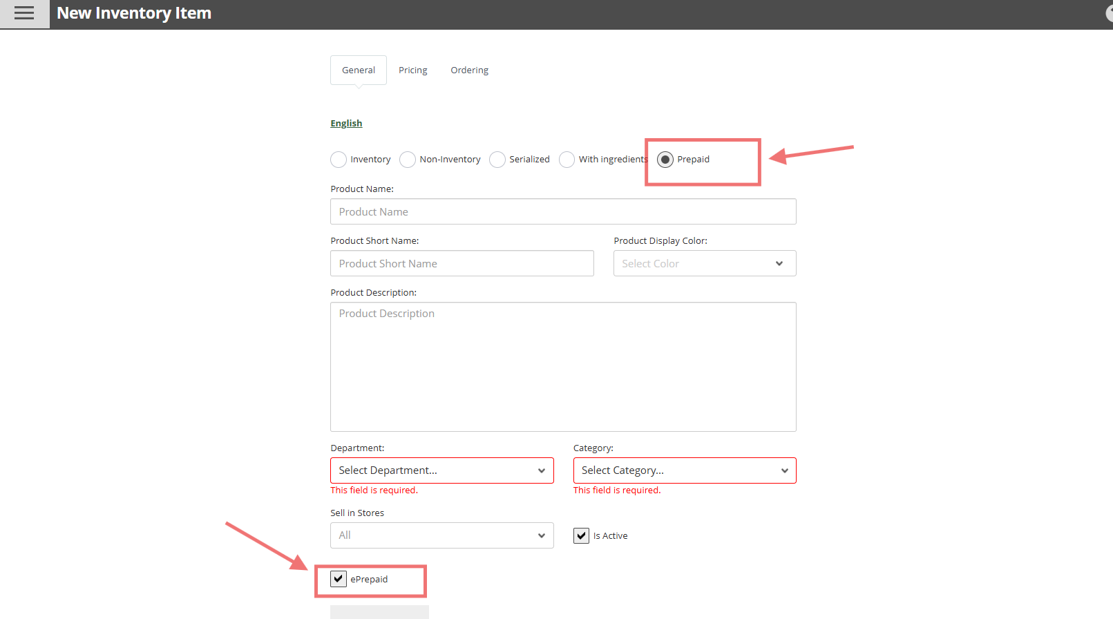 Create Prepaid or ePrepaid Items: