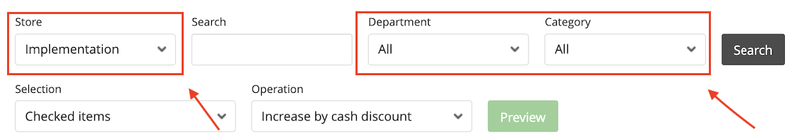 [Search] → [Select] → [Preview] → [Apply]Select a store (required before searching).