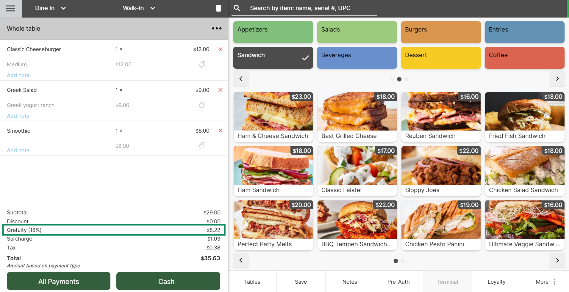 Example: Gratuity for Dine-In Only Step 6: Payment Method