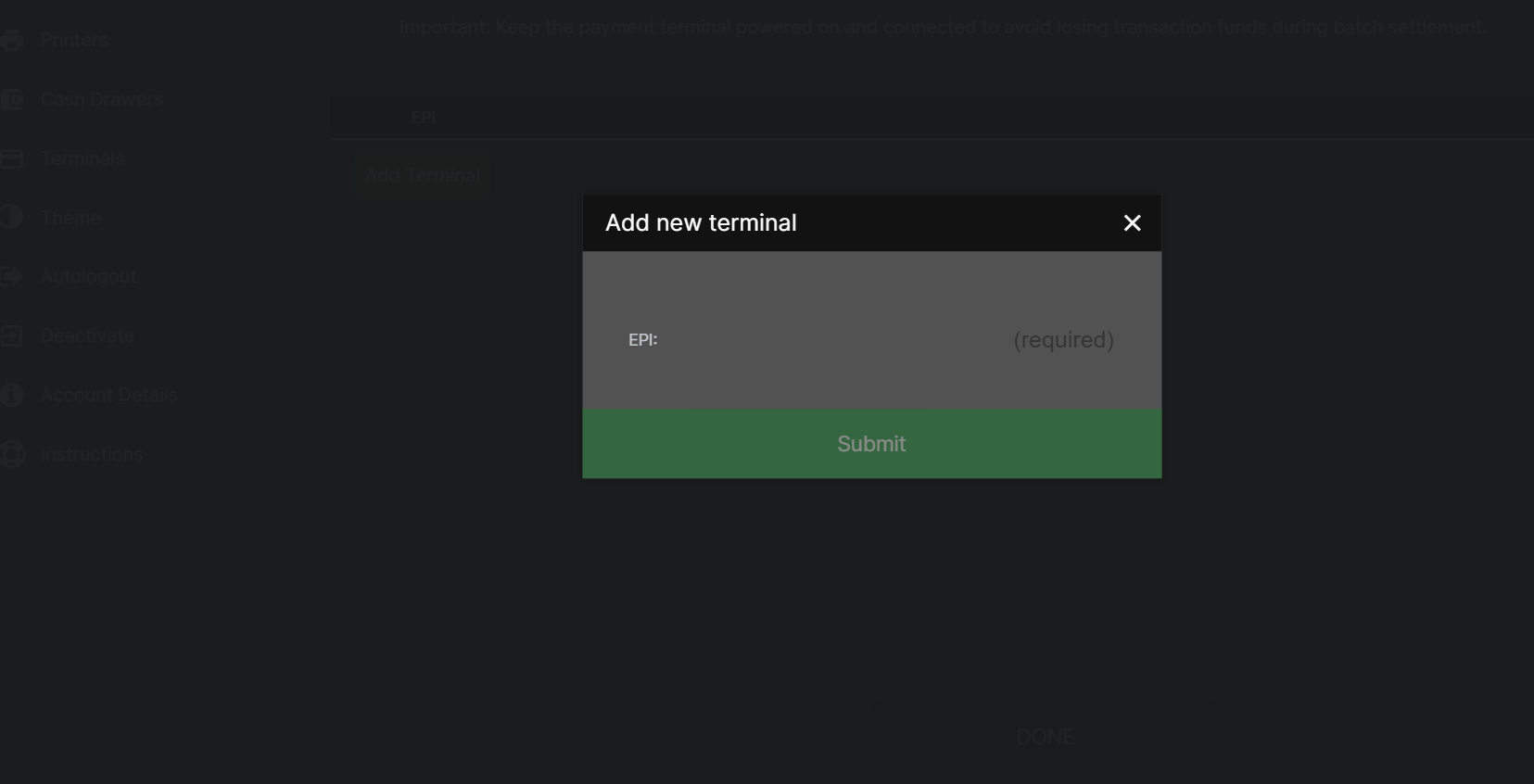 Launch your Valor VP800 terminal and follow the steps (connect to WiFi and enter the EPI provided to you).